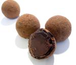 For these, you simply sift 1 level dessertspoon of cocoa powder on to a flat plate, then take heaped half teaspoons of the first batch of truffle mixture and either dust each one straight away all over, which gives the truffle a rough, rock-like appearance, or dust your hands in cocoa and roll each piece into a ball and then roll it in the cocoa powder if you like a smoother look. Place it immediately into a paper case. Obviously the less handling the better as the warmth of your hands melts the chocolate.