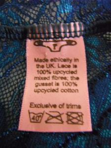 Who Made Your Pants uses ‘upcycled‘ end-of-line fabric bought from large manufacturers – fabric that would otherwise become waste. They have a small workshop in southern England where their team of makers creates their pretty lacy knickers, and they are a workers’ collective, self-sustaining and providing both work and training for women who have been in difficult circumstances.